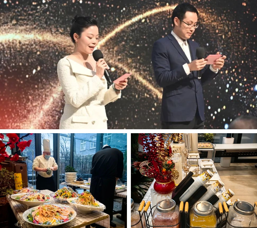 在尚融资本 2023 年度经营工作总结会结束后,公司举办了一场主题为“携手同行,前程朤朤”的年会晚宴。各中心员工都准备了精彩纷呈的节目。